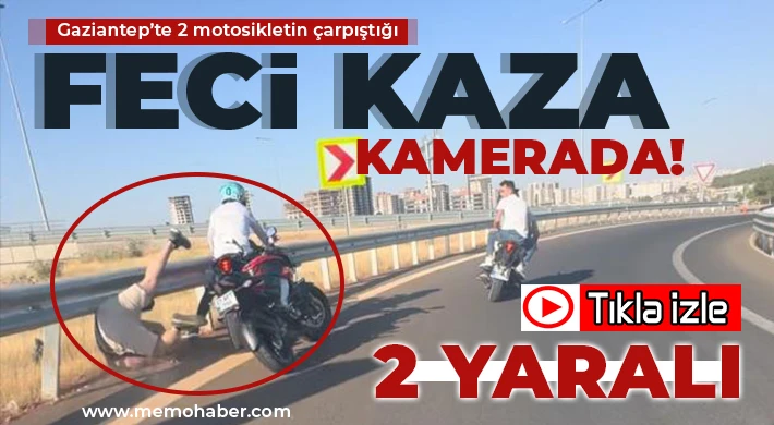 Gaziantep'te seyir halindeki 2 motosikletin çarpışması sonucunda motosiklet sürücüleri yaralandı. Motosikletlerin çarpıştığı feci kaza anları ise arkadaki başka bir motosikletlinin kask kamerasına yansıdı.