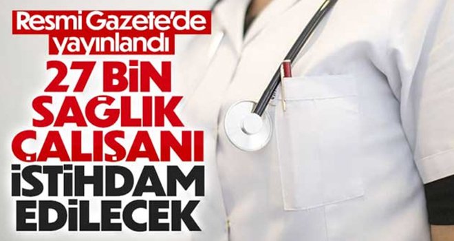 Cumhurbaşkanı Recep Tayyip Erdoğan'ın imzasıyla Resmi Gazete'de yer alan karara göre, eleman temininde güçlük çekilen yerlerde ve hizmet dallarında sağlık hizmetlerinin etkili ve verimli bir şekilde yürütülebilmesi amacıyla 2023 yılında uygulanmak üzere istihdam edilecek sözleşmeli sağlık personeli sayısı 27 bin olarak belirlendi.