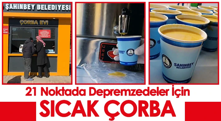 Depremzede vatandaşların ihtiyaçlarını gidermek adına gece gündüz çalışmaya devam eden Şahinbey Belediyesi 21 noktada depremzedelerin içini ısıtan çorba dağıtımı gerçekleştiriyor.
