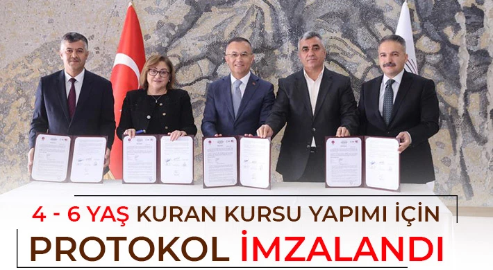Gaziantep Büyükşehir Belediyesi, Gaziantep Valiliği, Gaziantep İl Müftülüğü ve Şahinbey İlçe Müftülüğü iş birliğinde Hayırsever Faruk Kaya tarafından yaptırılacak 4-6 yaş arası kuran kursu yapımı için protokol imzalandı.