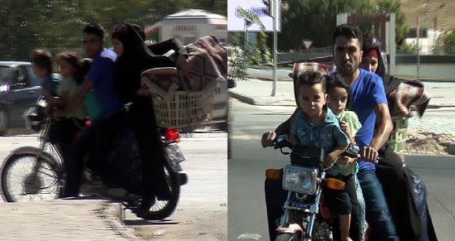 Gaziantep Havalimanı yolu üzerinde bir kişi motosikletine 3 çocuğu, eşini bindirip, arka bölüme de piknik sepeti yerleştirerek yolculuk yaptı. Ön tarafına 3 çocuğunu oturttuğu, arkasında da eşi ile yolculuk yapan sürücü, trafikte görenleri şaşkına çevirdi. Başlarında koruyucu kask bulunmayan 3'ü çocuk 5 kişi motosiklette tehlikeye ve şaşkın bakışlara aldırış etmeden yoluna devam etti.
