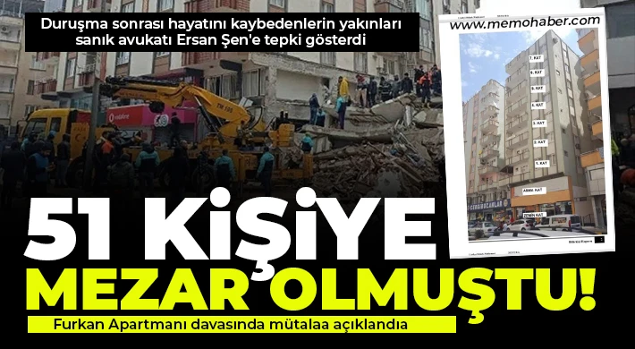 Duruşma sonrası adliye önünde toplanan ölenlerin yakınları ise gözyaşı dökerek 'adalet arıyoruz' dedi. Aileler adına konuşan mağdur bir vatandaş, "Biz sadece ailelerimizi kaybetmedik. Biz mutluluğumuzu, insanlığımızı kaybettik. Her şeyimizi toprağa gömdük. Biz adalet arıyoruz. Bilirkişi raporunda her şey kanıtlı bir şekilde ortayken tutuklanmaların ertelenmesi söz konusu. Biz adalet arıyoruz. Lütfen bize destek olun, sesimize ses olun. Sesimizi duyan var mı" diyerek tepki gösterdi. Bir başka mağdur ise "Bizim binamız depremden yıkılmadı, kolon kesilmesi nedeniyle yıkıldı. Buna rağmen serbest bırakıldılar" diye konuştu. Aileler, Ersan Şen'in güvence istemesine de tepki gösterdi.