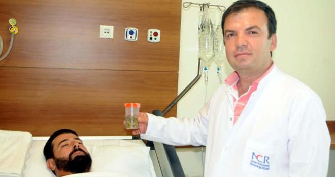 Yrd. Doç. Dr. Ahmet Şeker, yıllardır kontrol yaptırmayan hastanın safra kesesindeki 512 taşı ameliyatla aldıklarını belirterek, "Mustafa Kahraman, hastaneye karın ağrısı şikayeti ile geldi. Yaptığımız tetkiklerde safra kesesinin taşlarla dolu olduğunu gördük ve kapalı yöntemle ameliyata aldık. Hastamızın açtığımız safra kesesinden 512 adet taş çıkardık. Ameliyat bir saat sürdü ve hastamızı bir gün gözlem altında tuttuktan sonra taburcu edeceğiz" dedi.