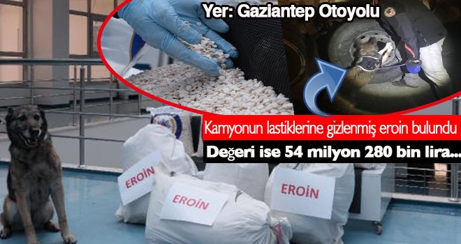 Diğer operasyonda ise polisler, Gaziantep-Adana-Tarsus (TAG) Otoyolu'nda şüphelendikleri kamyonu durdurdu. Narkotik köpeği Şans'ın lastiklere tepki vermesi üzerine polis harekete geçti. Yerinden çıkarılan lastikleri, spiral ile kesen ekipler, 114 kilo 450 gram eroin ele geçirdi, sürücü gözaltına alındı.