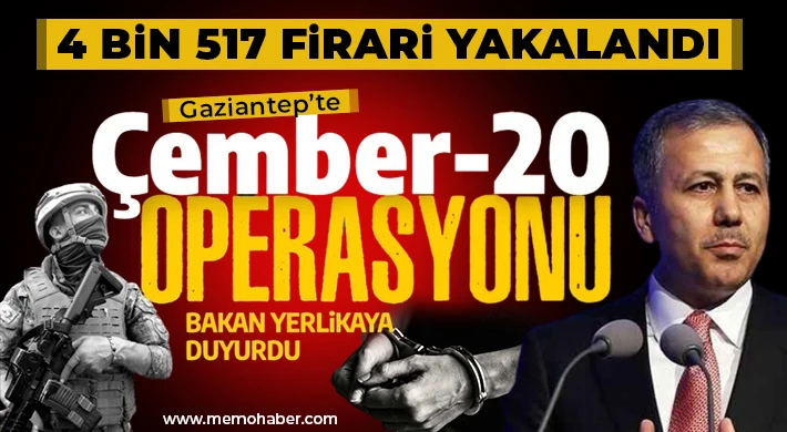 Bakan Yerlikaya'nın sosyal medya hesabından yaptığı açıklamaya göre, 81 ilde son 5 günde çeşitli suçlardan aranan kişilere yönelik "Çember-20" operasyonları düzenlendi. Operasyonlarda, hakkında yakalama kaydı bulunan 4 bin 517 firari gözaltına alındı. Bu kişilerden 4 bin 489'unun 5 yıla kadar, 19'unun 5-10 yıla kadar, 9'unun ise 10 yıl ve üzeri süredir arandığı tespit edildi. Yakalananlardan 731'inin narkotik, 698'inin hırsızlık, 458'inin kaçakçılık ve organize, 454'ünün dolandırıcılık, 180'inin yağma, 131'inin cinsel, 124'ünün adam öldürme ve 39'unun terör suçlarını işledikleri için arandığı belirlendi.
