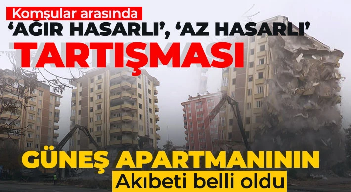 Gaziantep'te, Kahramanmaraş merkezli 7,7 ve 7,6 büyüklüklerindeki depremlerde hasar gören 4 bloktan oluşan 9 katlı Güneş Apartmanı'nda hasar tespit çalışması yapıldı. Alınan bilgiye göre, 8 katlı Güneş Apartmanı D Blok'a önce "Orta hasarlı" raporu verildi. Komşular arasında tartışmaya neden olan ve itirazları sonucunda ise yıkım kararı verilirken, yaşanan tartışmanın ardından binanın yıkımı saniyeler içerisinde gerçekleşti.
