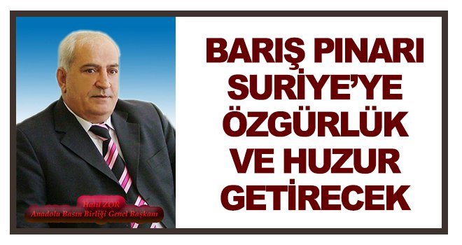Anadolu Basın Birliği Genel Başkanı Halil Zor, Suriye’de yürütülen Barış Pınarı Harekatına ilişkin açıklamalarda bulundu. Zor, Barış Pınarı Harekatını yürekten desteklediklerini söyledi.
