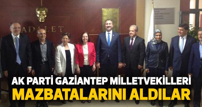 7 Haziran milletvekili sonuçlarına göre Gaziantep'ten 6 milletvekili çıkaran AK Parti'de mazbata alma işlemi tamamlandı. Gaziantep Adliyesi'nde gerçekleşen mazbata törenine AK Parti Gaziantep Milletvekilleri Mehmet Şimşek, Abdulhamit Gül, Şamil Tayyar, Nejat Koçer, Mehmet Erdoğan ve Canan Candemir Çelik katıldı. Böylece bu isimlerin milletvekilliği resmiyet kazandı.