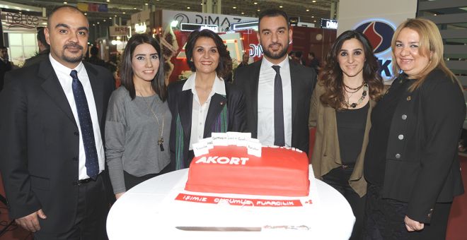 Daha sonra PANTEX Fuarı'nın açılışında Akort Fuarcılığın kuruluş yıl dönümünü temsil eden pasta ile günün anısına hatıra fotoğrafı çektirildi.