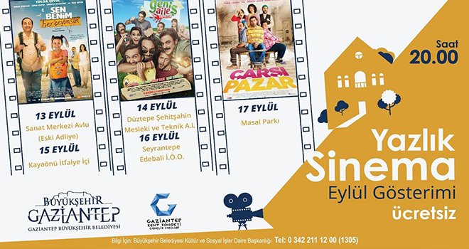 Gaziantep Büyükşehir Belediyesi ve Kent Konseyi Gençlik Meclisi işbirliğiyle açık hava sinema etkinlikleri düzenlenecek.
