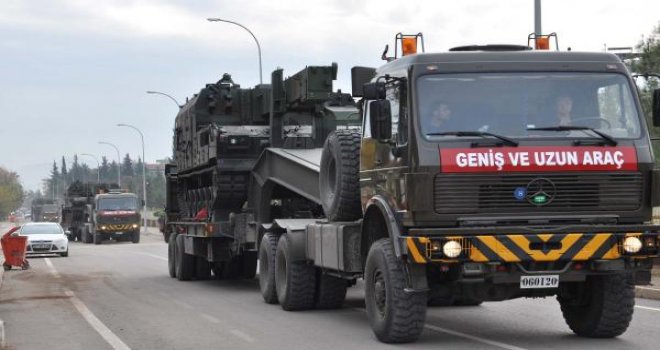 Suriye sınırındaki Gaziantep’in İslahiye İlçesi’ne askeri sevkiyat sürüyor. Adana 6'ncı Mekanize ve Piyade Tümen Komutanlığı’ndan çekicilerle gönderilen 4 Fırtına obüsü, öğle saatlerinde İslahiye'ye ulaştı. Obüsler, polis eskortu eşliğinde 106'ncı Topçu Alay Komutanlığı’nın Alpay Başaran Kışlası’na götürüldü. Fırtına obüslerinin Suriye sınırında görevlendirileceği belirtildi.