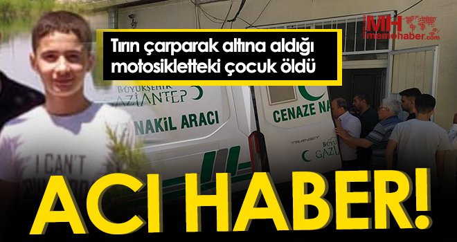 Gaziantep'te tırın çarptıktan sonra altına aldığı elektrikli motosikletin üzerinde bulunan 14 yaşındaki çocuk hayatını kaybederken, motosiklet sürücüsü ağabeyi hafif yaralandı. Ölen çocuğun cenazesini teslim alan ailenin feryatları yürekleri dağlarken, olayla ilgili tır sürücüsü gözaltına alındı.