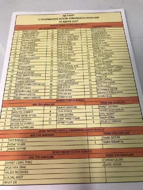 AK PARTİ'NİN YENİ MKYK LİSTESİ