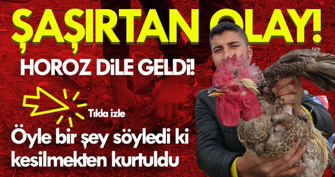 Sahibinin kesmek için yakaladığı horoz, bıçağı görünce önce Allah, ardından da Anne diye bağırmaya başladı. Horoz’un çıkardığı sesler karşısında şaşkına dönen sahibi, elindeki bıçağı ve horozu bırakıp kesmekten vaz geçti. Ali Dibek’e ait 2 yaşındaki horoz, diğer horozlar gibi ötmek yerine tavuklar gibi sesler çıkarıyor.