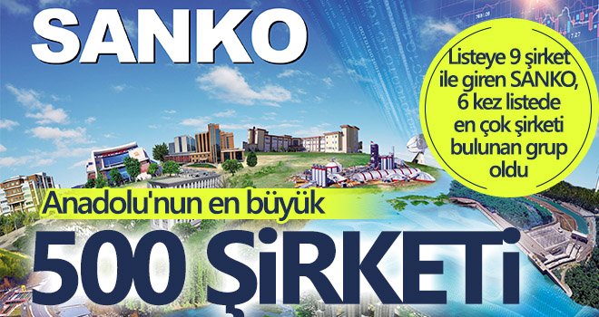Bir ekonomi dergisi tarafından gerçekleştirilen araştırmadaAnadolu'nun en büyük 500 şirketi belli oldu. Dergide üretimden net satışlar üzerinde yapılan değerlendirmeye göre, birinci sıradaki firma 11 milyar 961 milyon 628 bin 999 TL, son sırada yer alan firma ise 254 milyon 767 bin 428 TL ciro gerçekleştirdi. Yatırımlarını, "Dünyada Türkiye, Türkiye'de Gaziantep” anlayışı ile gerçekleştiren SANKO Holding, derginin Anadolu 500 araştırmasında altı yıldan beri en çok şirketi bulunan grup olarak zirvedeki yerini korudu. Şirketlerin 2020 yılı üretimden net satışları baz alınarak yapılan çalışmaya göre, listede SANKO Grubu şirketlerinden Sanko Tekstil, Sanko Dış Ticaret, Sanko Enerji, Süper Film Ambalaj, TechData Bilgisayar Sistemleri, Çimko Çimento ve Beton, Sanko Pazarlama İthalat İhracat, Enko Enerji ve Bartın Çimento bulunuyor.