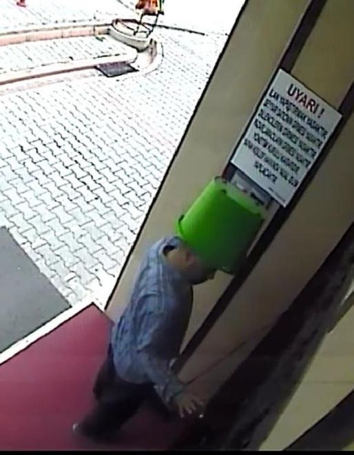 Bir apartmana hırsızlık amacıyla giren ve ceaevinden izinli çıktığı anlaşılan Murat Yalçın (36), güvenlik kamerasına görüntü vermemek için başına plastik kova geçirdi. Yanında getirdiği süpürge ile de kameranın yönünü değiştiren Yalçın, apartmanın bodrum katındaki bisikleti çaldı.