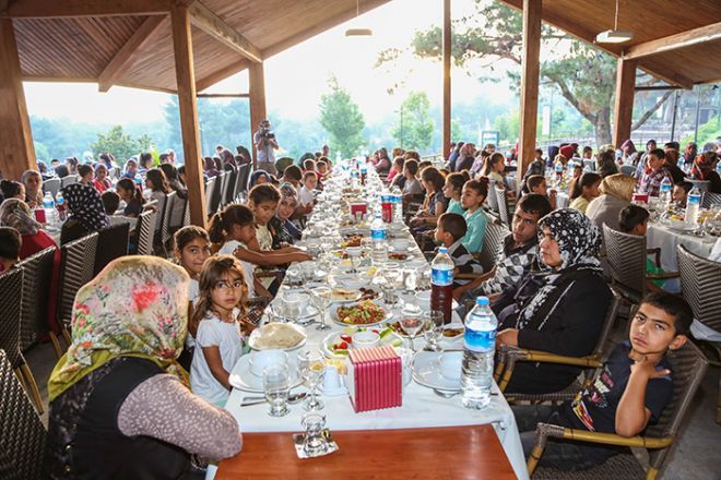 Okunan ezan ile birlikte protokol üyeleri ve aileler hep birlikte iftarını açtı. İftar sonrası bir konuşma yapan Başkan Yardımcısı Hayri Özkeçeci, bir arada olmanın mutluluğunu yaşadıklarını belirterek, “Öncelikle davetimize icabetinizden dolayı hepinize ayrı ayrı teşekkür ediyorum. Artık geleneksel hale getirdiğimiz ve 2 Temmuz Yetimler Günü dolayısıyla, bu mübarek sofrada hep beraber olmanın mutluluğunu yaşıyoruz. Sizlerle bu atmosferi yaşamak bile inan kelimelerle anlatacak gibi değil. Gülen yüzleriniz hiçbir zaman solmasın ve hep gülsün. Rabbim bu birlik ve beraberliğimizi hiçbir zaman bozmasın diyorum ve hepinize katılımlarınızdan dolayı tekrar teşekkür ediyor. Hayırlı iftarlar diliyorum” dedi.