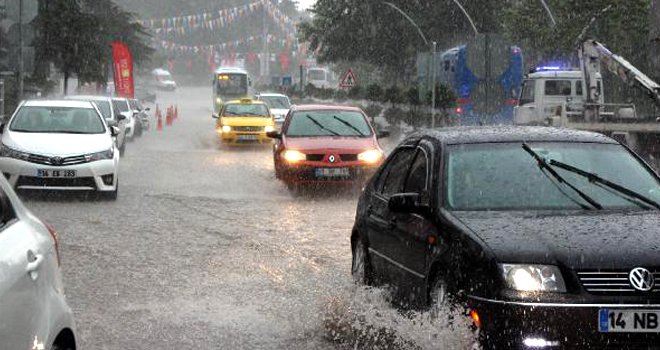 BOLU'da, yaklaşık bir saat etkili olan yağmurda metrekareye 29 kilogram yağmur düşerken, alt geçitleri ve bazı evlerin alt katlarını sular bastı. Sularla kaplı yollarda araçlar ilerlemekte zorlandı.