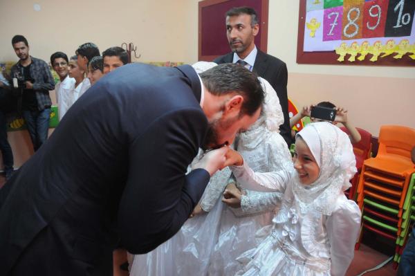 Burada Suriyeli çocuklar tarafından çiçeklerle karşılanan Bakan Albayrak, konteyner kenti gezip yetkililerden bilgi aldı. Konteyner kent içerisindeki sosyal tesis ve ana okulunu da gezen Bakan Albayrak'a, Suriyeli çocuklar Türkçe şiir okuyup, Arapça şarkı söyledi.