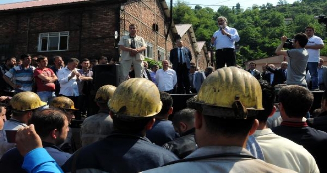 "Türkiye’de 106 milyon ton kömür tüketiliyor. 80 milyon tonunu yerli üretiyoruz. Bunun önemli bir kısmı linyit. 1.3 milyon tonu yalnızca TTK taşkömürü. Sizin çıkarttığınız kömürler. Ben genel müdür ve yöneticilierimize de söyledim. 'İşçi kardeşlerimizin güvenliği olmadan bana 1 kilo kömür çıkartmayın' dedim. 1 ton kömür çıkartmayın. Bunu bu acıları bizzat yaşayan, bizzat o işçi kardeşlerimizle beraber olan bir kardeşiniz olarak bir arkadaşınız olarak söylüyorum. Bizim yalnızca levhalarda duvarlarda yazılı değil. Yalnızca baretlerde dövizlerde yazılı değil. Önce güvenlik. Bunu uygulayacağız. Burada 2 bin 500’e yakın kardeşimiz çalışıyor. Burada mekaneziyi arttıracağız ve güvenliği arttırarak burada üretimi arttıracağız."