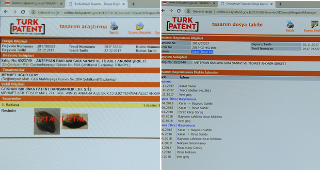 Tasarım tescilinin iptalinde büyük rol oynayan YOLPA Danışmanlık firma sahibi Hülya Sarı ise süreci şu sözlerle anlattı; "Midye baklavanın tasarım teciline iki ayrı dosya şeklinde müracat edilmişti. Tek ürüne iki ayrı dosya ile başvurulmuş. Dosyanın biri itirazda takılırsa diğeri geçsin diye. Tam da istedikleri gibi dosyanın biri iptal oldu ama diğeri geçti. Gaziantep'teki baklavacılara ihtar gönderdiler. Biz de itiraz dosyamızı zamanında teslim ettiğimiz için enstitüyü sürekli arayarak iptal ettirdik. Çünkü kendi hatalarıydı tescil belgesi vermek."