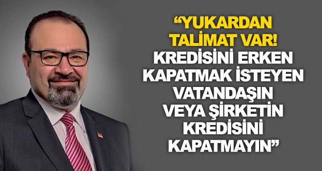 Banka genel müdürlüklerinden şubelerine; “Yukardan talimat var! Kredisini erken kapatmak isteyen vatandaşın veya şirketin kredisini kapatmayın” uyarısı yapılmakta.