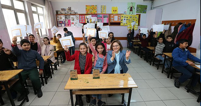 Gaziantep Büyükşehir Belediye Başkanı Fatma Şahin, Şehit Yusuf Erin Ortaokulu’nda öğrencilere karnelerini dağıttı. 2017-2018 eğitim öğretim yılı birinci dönem karne dağıtım programına katılan Şahin, planlı çalışmanın insanı başarıya götüreceğini söyleyerek, minik öğrencileri bol bol öğütledi.