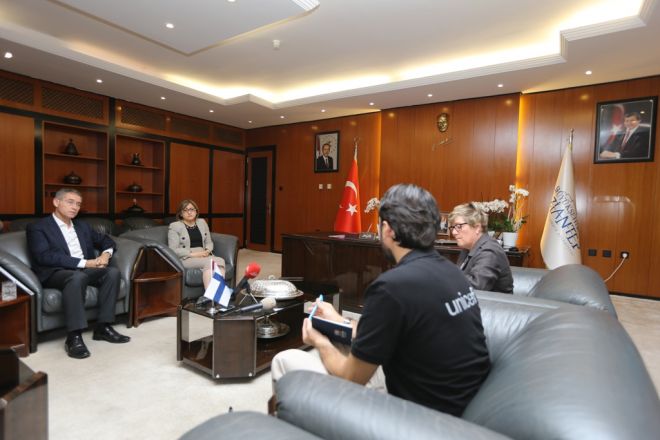 Finlandiya’nın Ankara Büyükelçisi Nina Vaskunlahti ve Birleşmiş Milletler Çocuklara Yardım Fonu (UNICEF) Türkiye Temsilcisi Philippe Duamelle, Gaziantep Büyükşehir Belediye Başkanı Fatma Şahin’i ziyaret etti.