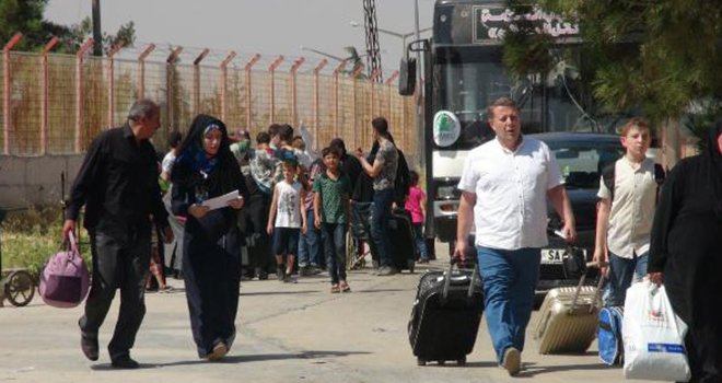 Kilis’in Öncüpınar Sınır Kapısı üzerinden 13-23 Haziran tarihleri arasında ülkelerine giden Suriyeliler'in dönüşleri sürüyor. Kilis Valiliği tarafından izin verilen Suriyeliler Halep’in Azez, Çobanbey, El Bab, Cerablus ilçeleri ile Mare, Soran, Aktarin kasabaları ve köylerinde yakınlarını ziyaret ettikten sonra Türkiye'ye dönmeye devam ederken, Suriyeliler'in gelişleri 14 Temmuz tarihine kadar sürecek. Suriye'nin Halep kentine bağlı Azez İlçesi'ndeki Babul Selam Sınır Kapısı’na gelen Suriyelilerin, Türkiye’ye gelmek için uzun kuyruklar oluşturduğu görüldü. Suriyeliler'in Türkiye’ye girişlerinde eşyaları arandıktan sonra, Göç İdaresi Müdürlüğü tarafından işlemleri yapılıyor. Ramazan Bayramını geçirmek için ülkelerine giden 68 bin 238 Suriyeliden izdihamı önlemek için geç saatlere kadar geçişlerin sürdürüldüğü belirtilirken, dün akşam itibariyle 16 bin 432 kişi Türkiye’ye giriş yaptığı açıklandı. Suriyeliler, otobüslerle Öncüpınar Sınır Kapısı'nın Türkiye tarafına getiriliyor.