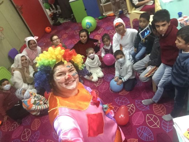 Ziyarete giden HKÜ öğrencileri palyaço ve sevimli hayvan kostümleriyle, tedavi gören tüm çocuklarla tek tek ilgilenerek, çocukların eğlenceli dakikalar geçirmesini sağladılar. Ailelerinden çocukların tedavi süreçleriyle ilgili bilgi de alan HKÜ öğrencileri, acil şifalar dileyerek her türlü yardıma hazır olduklarını belirttiler.