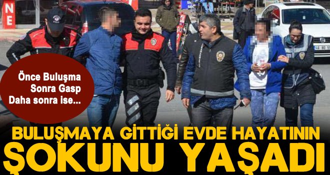 Kendisini çağıran Ayşe G.'nin (25) evine giden Ü.N.'nin (53), evdeki Şahin Y. (26) tarafından dövülerek cep telefonunu, cüzdanı ve otomobilinin anahtarı gasbedildi. Polis olay sonrası kaçan Ayşe G. ve Şahin Y.'yi yakalayarak gözaltına aldı.
