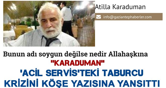 Gaziantep’te ki özel hastanelerin acil servisindeki sorunları Gaziantephaberler.com’un sahibi Atilla Karaduman köşe yazısında şöyle dile getirdi: