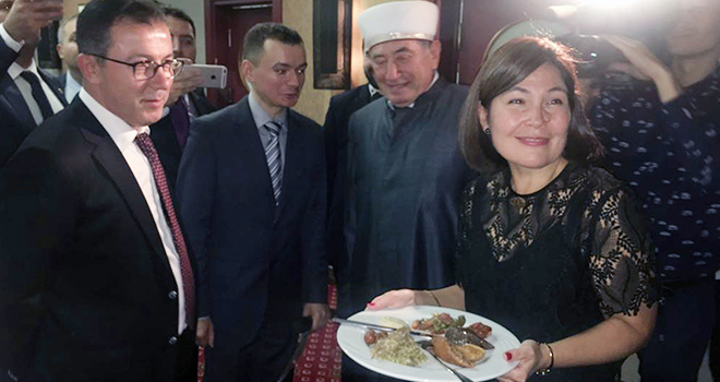 Türkiye’nin Minsk Büyükelçisi Kezban Nilvana Darama, “Gaziantep Büyükşehir Belediye Başkanı Fatma Şahin’in Gaziantep’in uluslararası alandaki tanıtımına yaptığı katkılarını takdir ediyoruz ve bu gecenin onur konuğu olarak Gaziantep mutfağıyla burada bulundukları için teşekkürlerimi sunuyorum. Gaziantep’in etkisi bugün itibariyle Cumhuriyet Bayramı resepsiyonuyla başladı. İmzalanacak olan işbirliği niyet anlaşmasıyla Gaziantep ve Minsk birbirini daha iyi tanıyacaktır’ dedi.