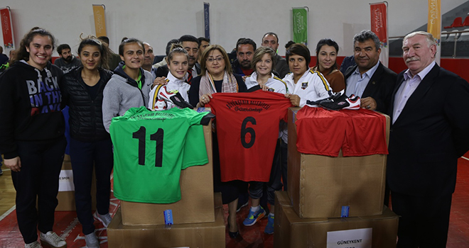 Program sonrası amatör spor kulüplerinin temsilcilerine 20 eşofman, 20 krampon, 20 forma, 20 şort, 20 tozlu ve 20 tekmelikten oluşan malzeme paketi verildi.