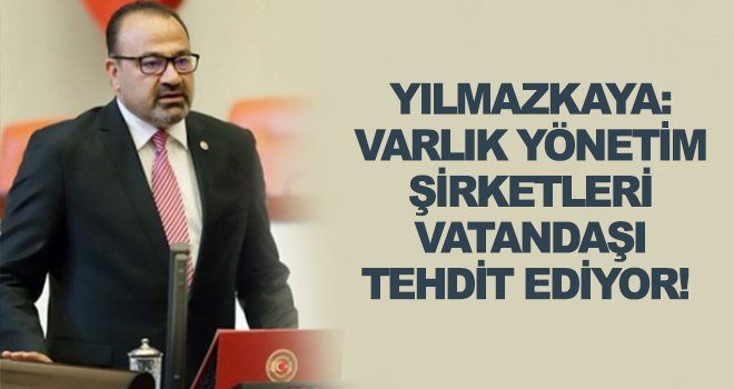 Konuşmasında, vatandaşı tehdit eden Varlık Yönetim Şirketleriyle ilgili “Yüce Meclisin bu konuda gerekli adımları atmasını bekliyorum” ifadelerini kullanan Yılmazkaya, “Varlık Yönetim Şirketleri birçok vatandaşı intihara sürüklediği gibi kanunlara da aykırı hareket etmektedir” dedi.