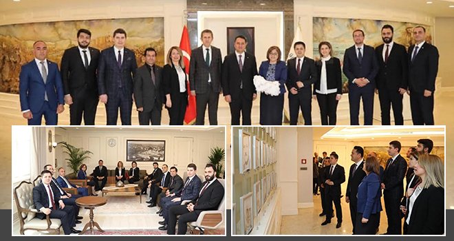 İMO Şube Başkanı Gökhan Çeliktürk ve Yönetim Kurulu Üyeleri, Başkan Fatma Şahin'in ardından Büyükşehir Belediye Başkan Vekili Latif Karadağ'ı da ziyaret ederek, başarılar dilediler.