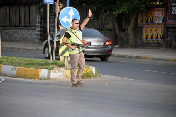 Kentte kavşaklarda görevli trafik polislerinin de saldırı olasılığına karşı çelik yelek giyip uzun namlulu silahlı oldukları gözlendi. Hüda- Par il binasının çevresinde de yoğun güvenlik önlemi alındı.