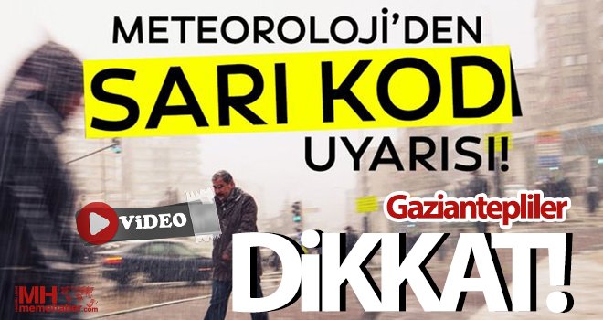 Meteoroloji bugün beklenen yağışlar nedeniyle 34 kente sarı ve turuncu kodlu uyarıda bulundu. Gaziantep için sağanak yağış uyarısı yapıldı. Gaziantep'te önümüzdeki Cuma günü hariç, hafta sonuna kadar yağışlı bir hava bekleniyor