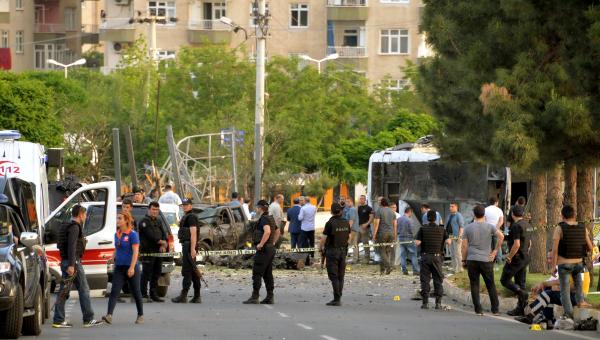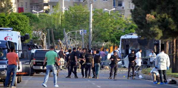 Diyarbakır'da PKK'ya yönelik düzenlenen operasyonlarda gözaltına alınan 7 şüpheliyi hastaneye sağlık kontrolüne götüren zırhlı polis midibüsüne yönelik bombalı saldırıda 3 kişi öldü, 12'si polis 45 kişi yaralandı. Saldırının bomba yüklü aracın, polis midibüsünün geçişi sırasında uzaktan kumanda ile infilak ettirilerek düzenlendiği, hastanelerde tedavi altına alınan yaralılardan birinin bebek olduğu belirtildi.