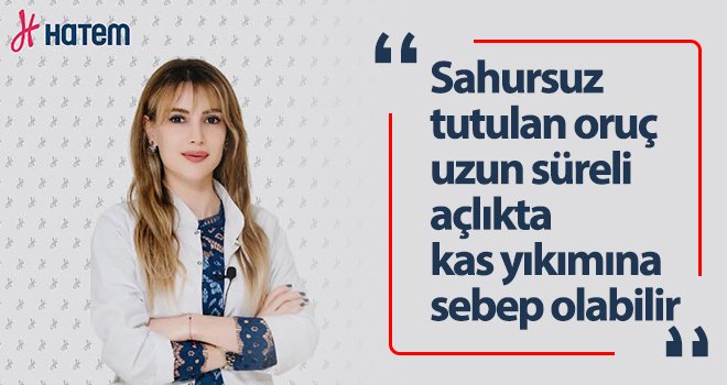 Sahursuz tutulan orucun kas yıkımına sebep olabileceğini söyleyen Diyetisyen Güler, “Bu sene Ramazan’da yaklaşık 15 saat açlığımız olmuş olacak. Ramazan boyunca sahursuz oruç tutmamalarını öneriyorum. Yaklaşık 15 saatlik açlık ciddi bir süredir. Ramazan ayının kışa doğru gitmesi avantaj olarak olarak gözükse de sahursuz tutulan oruç uzun süreli açlıkta kas yıkımına sebep olabilir. Bu yüzden proteinden zengin bir sahurla bir sahur yapmalarını öneriyorum” dedi.