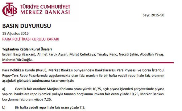 Merkez Bankası PPK özetlerini sitesinden saat 14:00'da yayımladı
