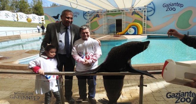 Gaziantep Büyükşehir Belediyesi Hayvanat Bahçesi’ni ziyaret eden öğrenciler Safari Parkı gezdi. Bahçede fok gösterisi izleyen down sendromlu öğrenciler ayrıca, ata bindiler.