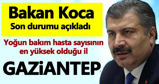 Sağlık Bakanı Fahrettin Koca Gaziantep'te yoğun bakım hasta sayısında ciddi bir artış olduğunu açıkladı.