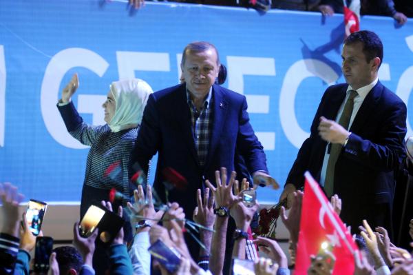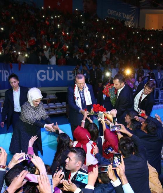 Konuşmasının sonunda yine paralel yapıyı eleştiren Erdoğan, "Tabanı ibadet, ortası ticaret, tavanı ihanet olan paralel yapıya da gerekli cevabı 1 Kasım'da vereceğinize inanıyorum" dedi.