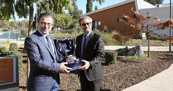 Yenilenebilir enerji sistemlerini kullanma özelliğiyle Türkiye’de bir ilk olan Gaziantep Büyükşehir Belediyesi Ekolojik Bina’yı inceleyen AB Türkiye Delegasyon Başkan Yardımcısı Gabriel Munuera, AB Bakan Yardımcısı Ali Şahin’le binanın bahçesine zeytin ağacı dikti. Ekolojik Bina özellikleriyle Munuera’yı, hayran bıraktı.