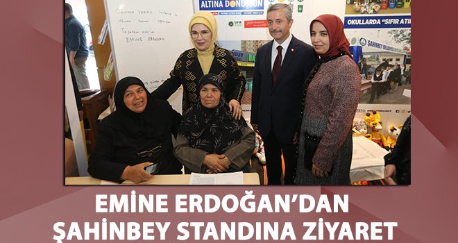 Bazı ziyaretler için Gaziantep’e gelen Cumhurbaşkanı Recep Tayyip Erdoğan’ın eşi Emine Erdoğan Şahinbey Belediyesi’nin standını ziyaret ederek, eğitime yapılan yatırımlar ve sıfır atıkla ilgili bilgi alıp Şahinbey Belediyesi sosyal tesislerinde eğitim alan kursiyerlerle sohbet etti.