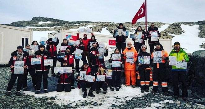 Erdem Koleji öğrencilerinden Bengü Yılmaz’ın çizdiği Antarktika resmi, Horseshoe Adası’nda kurulan Türk bilim üssünde sergilendi.