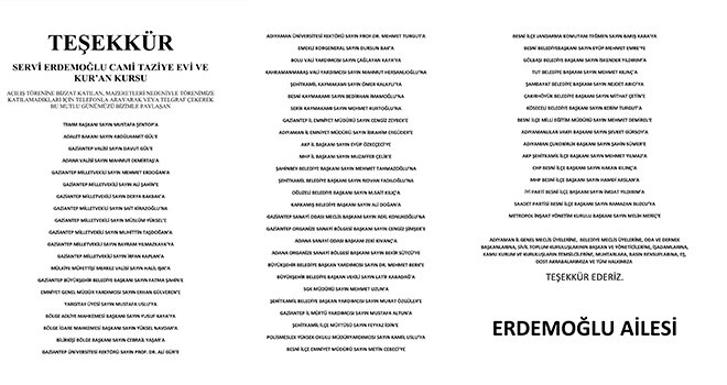 Erdemoğlu ailesinden teşekkür