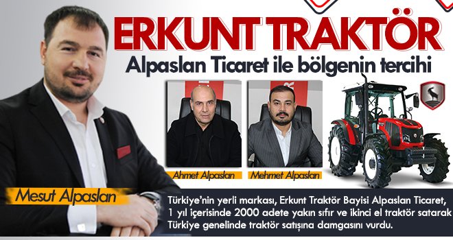Türkiye’nin yerli markası, Erkunt Traktör Bayisi Alpaslan Ticaret 1 yıl içerisinde 2000 adete yakın sıfır ve ikinci el traktör satıp Türkiye genelinde rekor satış yaparak yine geleneği bozmadı. 1973 yılında babası tarafından kurulan Alpaslan Ticaret’i devralan Ahmet Alpaslan daha sonra işletmeyi oğulları Mesut ve Mehmet Alpaslan’a devrederek markanın hızla büyümesine fırsat tanıdı.