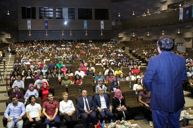 Hasan Kalyoncu Üniversitesi (HKÜ)’nün; yeni öğrencilerini üniversite hayatına adapte etmek için 28.09-01.10.2015 tarihleri arasında düzenlediği “Oryantasyon Programı” hız kesmeden devam ederken, yeni öğrencilere etkili iletişim kurmanın yolları, “Kişisel Gelişim Uzmanı Öğretim Görevlisi Fatih Akbaba” tarafından anlatıldı.